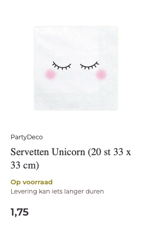 We hebben prachtige aankleding van hoge kwaliteit in ons assortiment. Het is mogelijk om alles los te kiezen, zodat je zelf kunt bepalen welke items je wel en niet wilt. Wil je in één keer klaar zijn? Kies dan voor het verjaardagsfeestjespakket: een mooie box met alles wat je nodig hebt om er een écht unicornfeestje van te maken.